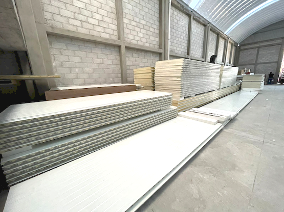 Contamos con panel tipo sándwich de pared con núcleo aislante de espuma de poliuretáno, PIR, PUR, o Lana Mineral.