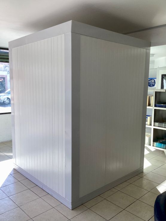 La línea ECO Slim-ICE son Cámaras frigoríficas prediseñadas de medida 1.70 m. X 1.70 X 2.71 m. de altura, con unidades condensadora de bajo perfil.